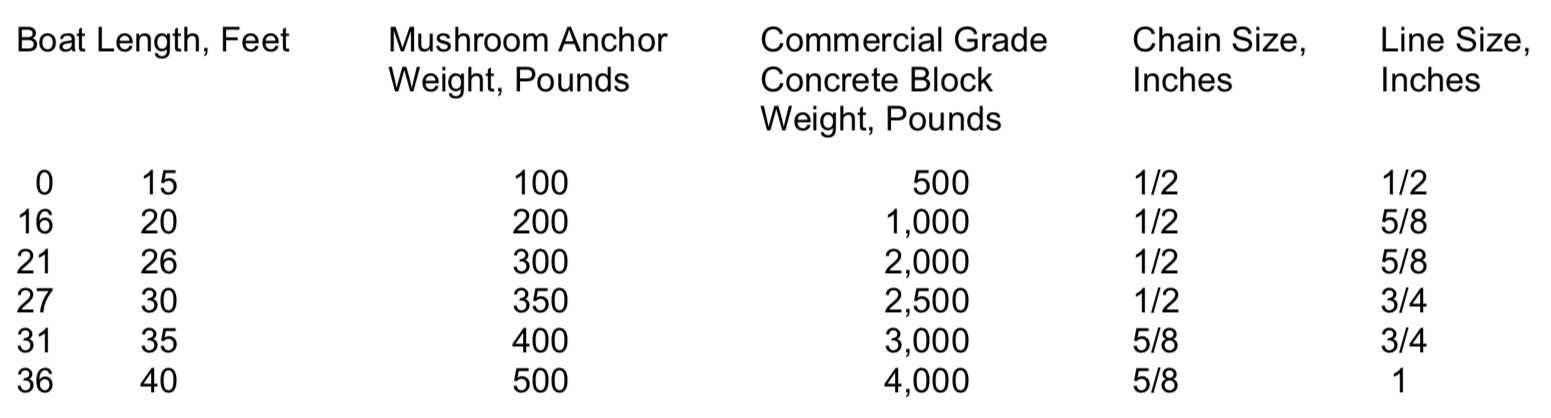 What size mushroom is needed for my mooring?